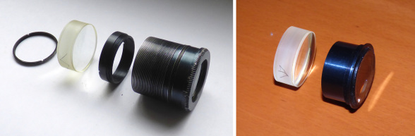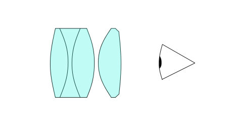 Okular aus nur 2 Gruppen. Das Astropan-Okular (rechts) ähnelt im Aufbau dem Huet Marine Glas 8x40, 11° (links) mit Triplet als Feldlinse.