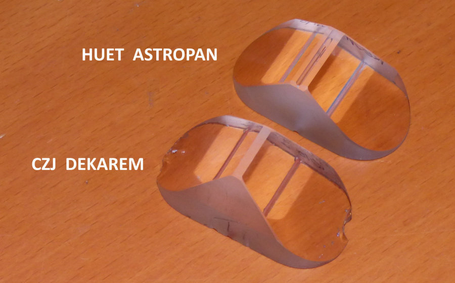 Größenvergleich Prisma Astropan und Prisma CZJ Dekarem. Prismenkopf Astropan mit Nut für Zinnverguss zur dauerhaften Sicherung der Justierung.